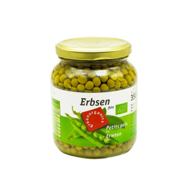 ING.: Ervilhas*, água, sal marinho. Peso líquido 350g, Peso escorrido 215g. ORIGEM: Holanda/Agricultura UE. Valores nutricionais médios por 100g: valor energético 190kJ/45.2kcal; Lípidos 0.35g, dos quasi ácidos gordos saturados 0.1g; Hidratos de carbono 4.8g, dos quais açúcares 1.8g; Proteínas 3.6g; Sal 0.3g.